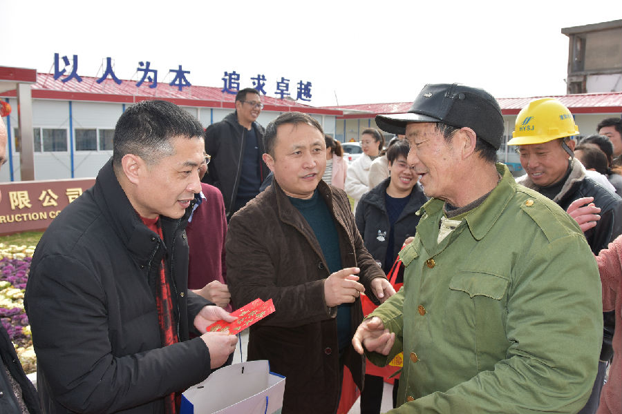 2019年2月5日己亥年春節(jié)大年初一,公司法人代表、總經(jīng)理尚超軍,公司黨委書記徐向峰一行,來到通呂運(yùn)河水利樞紐工程項(xiàng)目部,看望和慰問春節(jié)期間堅(jiān)守在一線的項(xiàng)目管理人員、施工作業(yè)人員及家屬,并現(xiàn)場(chǎng)分發(fā)了新年紅包和慰問品,向他們致以新春的問候和美好的祝福,向全力支持員工工作的家屬表示誠摯的感謝。
